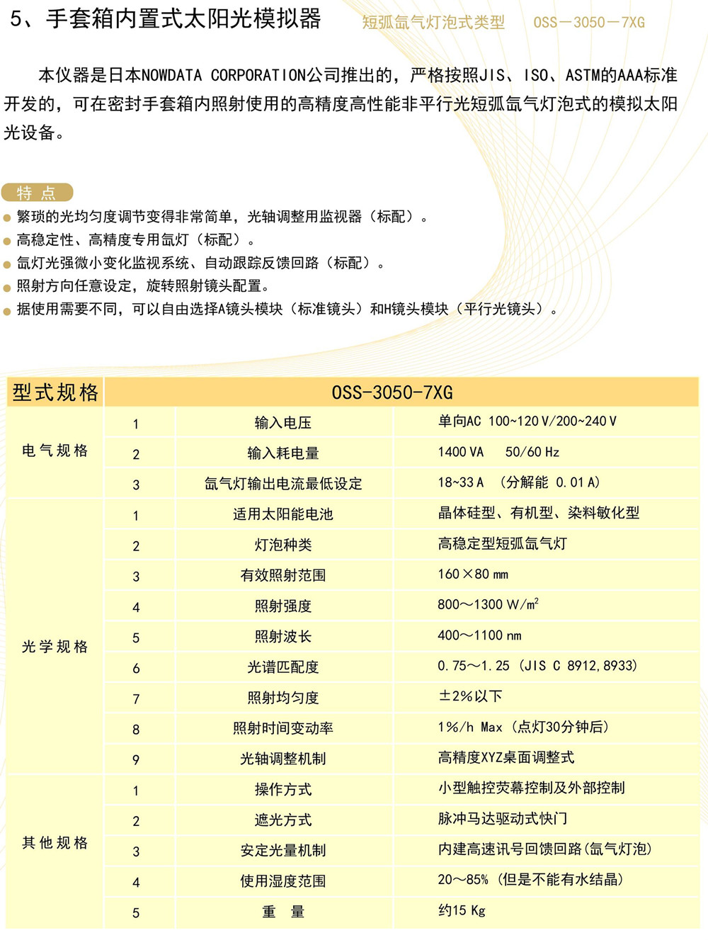 手套箱內(nèi)置式太陽光模擬器OSS-3050-7XG