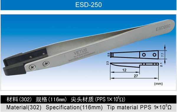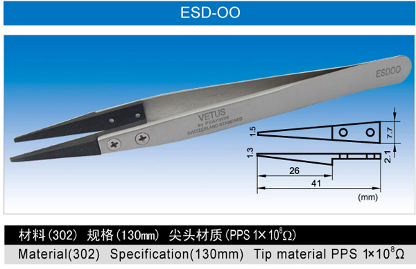 ESD系列可換頭不銹鋼防靜電鑷子