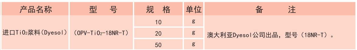 澳大利亞Dyesol公司出品,型號(hào)(18NR-T),規(guī)格:10g、20g、50g。