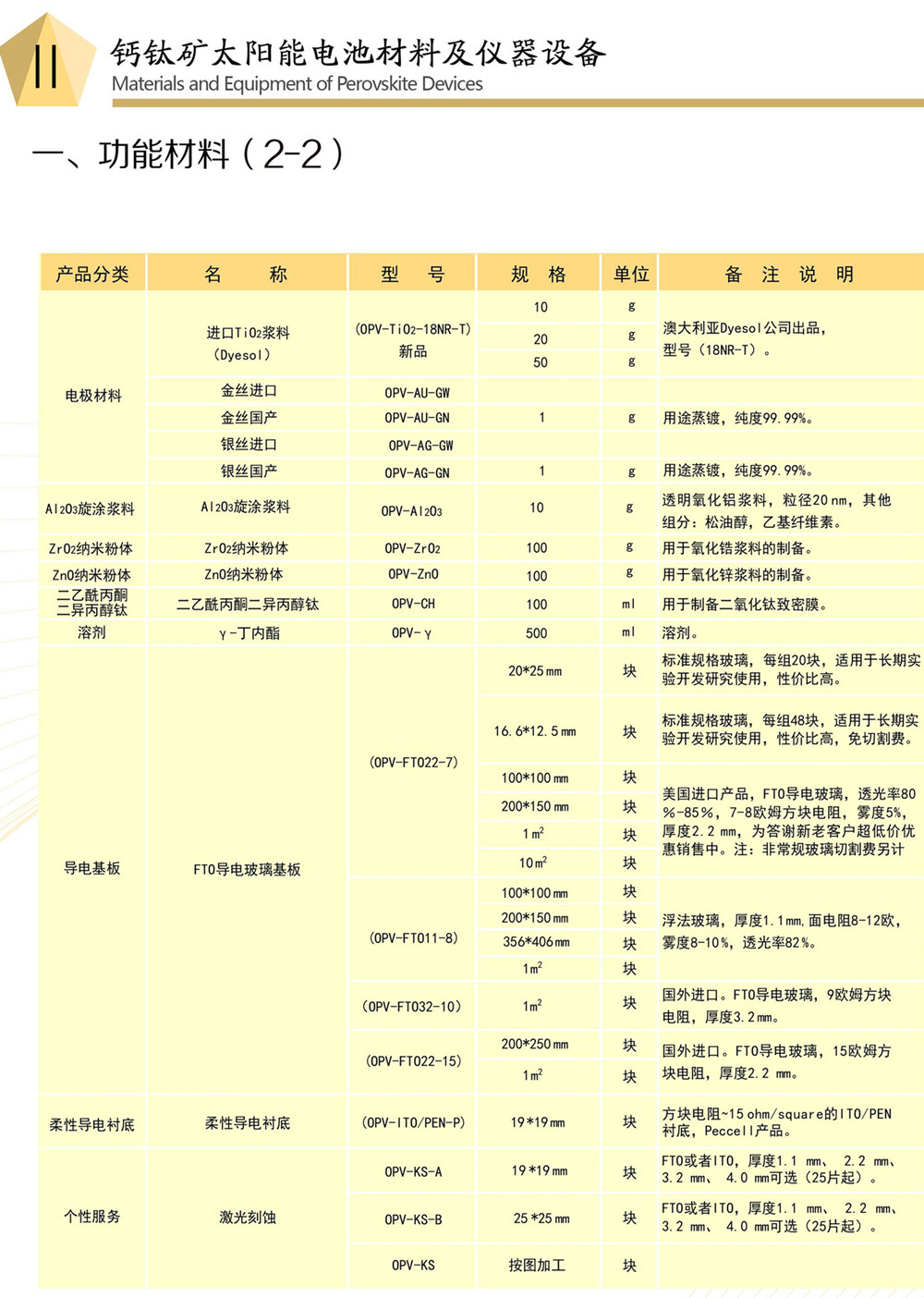鈣鈦礦太陽能電池材料明細(xì)