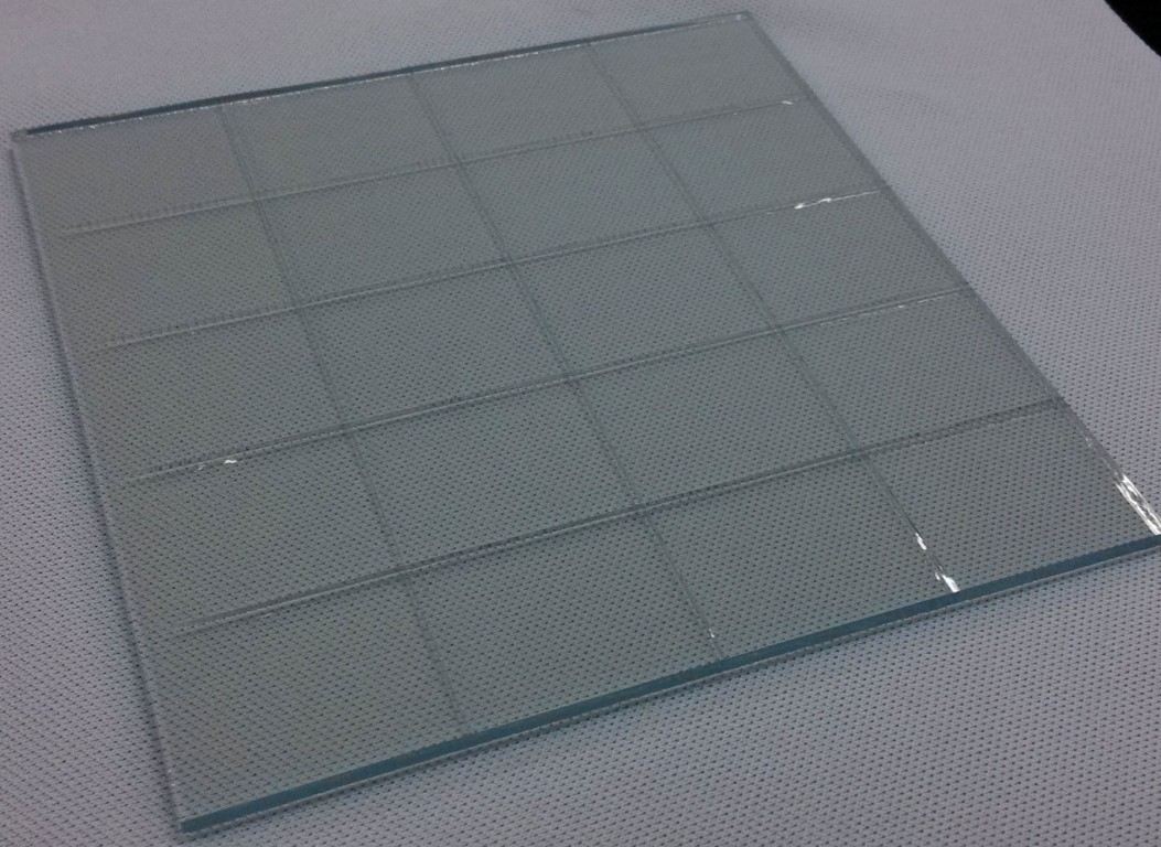 采用專用FTO玻璃切割設(shè)備,配合特殊定制金剛石玻璃刀頭,精確完成各種尺寸導(dǎo)電玻璃的切割,被切割的玻璃范圍在20*20mm——1200*1100mm,可以切割出的最小尺寸為5*5mm,誤差可保證在±0.2mm。※由于切割后玻璃邊緣會非常鋒利,建議進行磨邊加工??蓞⒖嘉夜咎厥夥?wù)——磨邊。