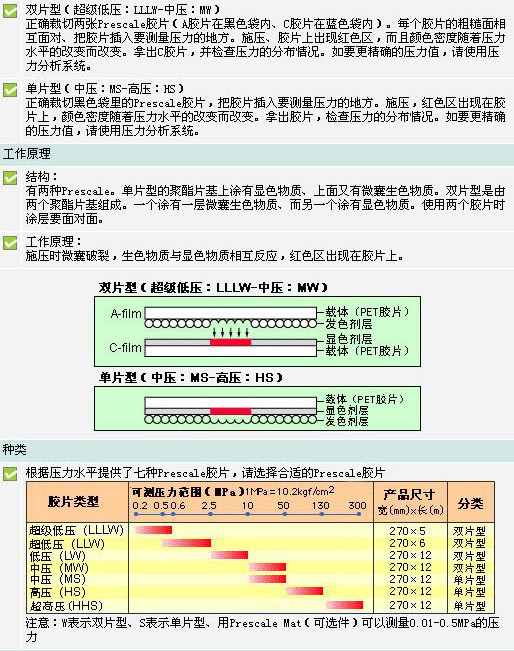 日本富士感壓紙,壓力測量膠片松普11年價優(yōu)贈禮品,全國最低價!富士感壓紙(壓力測量膠片)湛新技術(shù),用于測量機械壓力和平衡度(TFT-LCD液晶壓力,PDP,螺栓緊固壓力,接觸壓力,覆銅板、汽車工業(yè)等等).施壓在膠片時微顆粒破裂顯色, 顏色度即壓力值.最新Prescale壓力掃描測定儀FPD-8010E數(shù)字化分析.